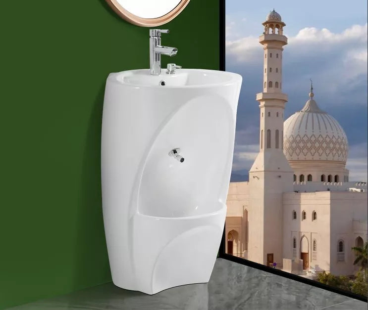Fully Ceramic, the Wudu Wash perfectly matches your other bathroom ceramic to fit seamlessly into any bathroom installation. As easy to install as a bidet, you'll be delighted with this handy system at prayer time or for other uses in your bathroom Muslim bathrooms can be transformed into personal wudu khanas with this purpose-designed wudu sink for the home.