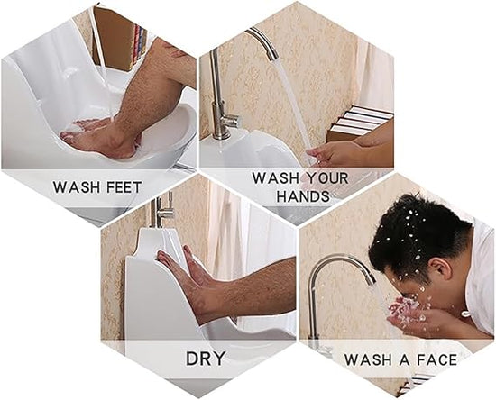 This foot-washing station offers a convenient solution for personal hygiene, especially for wudu practices. Its sleek, contemporary design seamlessly fits in any modern bathroom, providing both functionality and style.