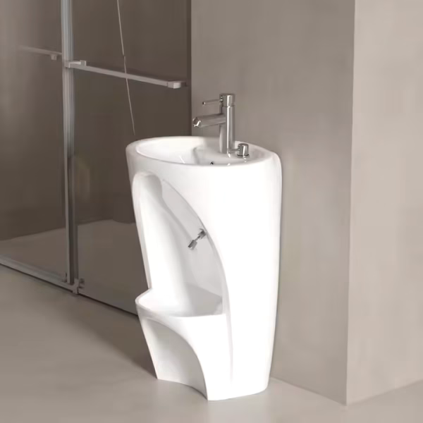 Redefine convenience in your ablution routine with this washbasin, featuring an integrated foot rinse area and a stylish, space-saving design.