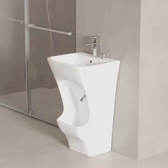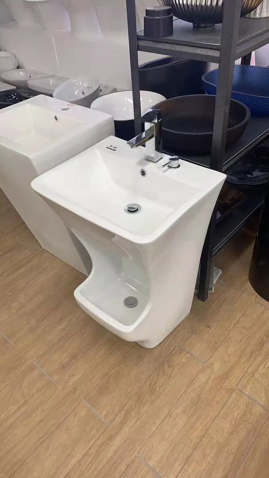Wudu Ablution Basin with integrated foot wash sink. Durable ceramic, easy to clean and maintain. Compact design, suitable for mosques, prayer rooms, schools, and homes. Includes installation accessories. UK stock, 2-year warranty.